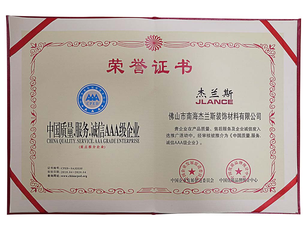 杰蘭斯裝飾材料有限公司秉承“以人為本、科技為先”的經(jīng)驗(yàn)理念,堅(jiān)持規(guī)模化運(yùn)作,規(guī)范化經(jīng)營(yíng)的發(fā)展思路,建立了完善的營(yíng)銷網(wǎng)絡(luò)及高素質(zhì)的銷售隊(duì)伍,擁有一支豐富經(jīng)驗(yàn)的設(shè)計(jì)團(tuán)隊(duì),專門配合建筑裝飾材料的深化設(shè)計(jì)及工藝構(gòu)思,品牌精益求精理念,高品位的產(chǎn)品、良好的質(zhì)量與精湛的工藝,建立了良好的口碑.